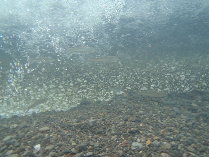 感想としては、どちらかというと少ない。例年は小さい天然アユがだくさん確認できるが、今年は少ないとの事でした。