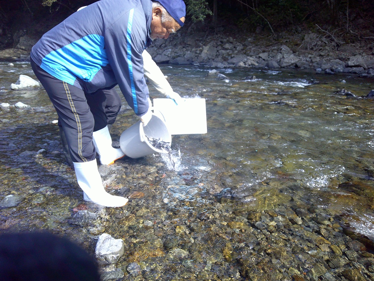 本日、伊尾木川へ稚アユを放流いたしました。